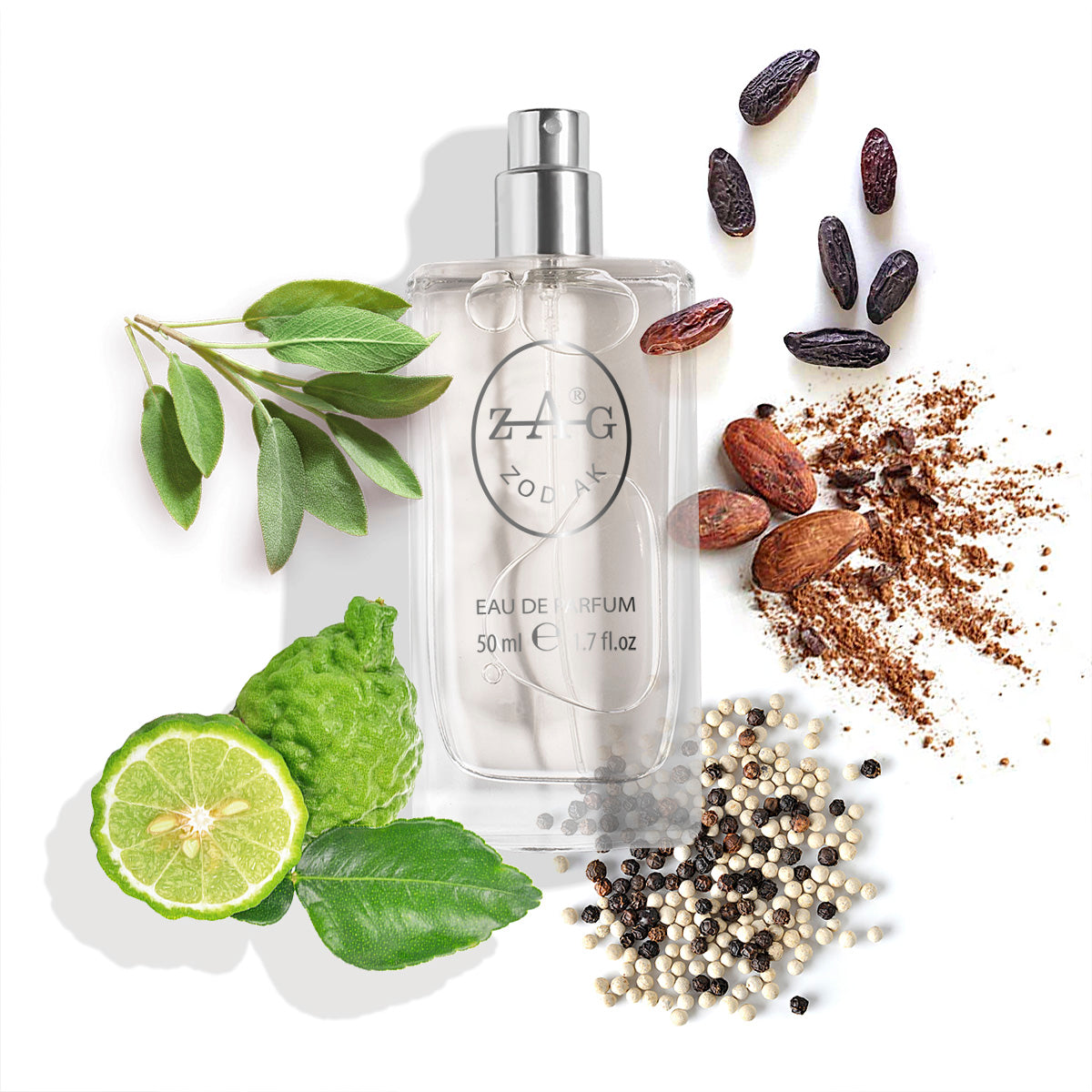 Topnoten: Witte peper, zwarte peper, bergamot; Hartnoten: Salie, ceder;