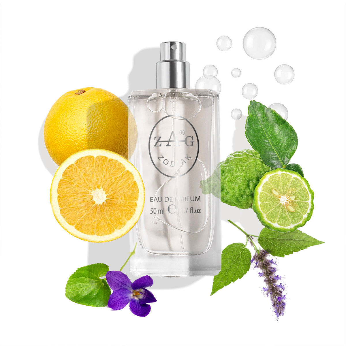 Een heldere opening van pittige citrus en aquatische noten, overgaand in een hart van aromatische kruiden en subtiele bloemen, rustend op een basis van zachte houttonen en warme muskus.