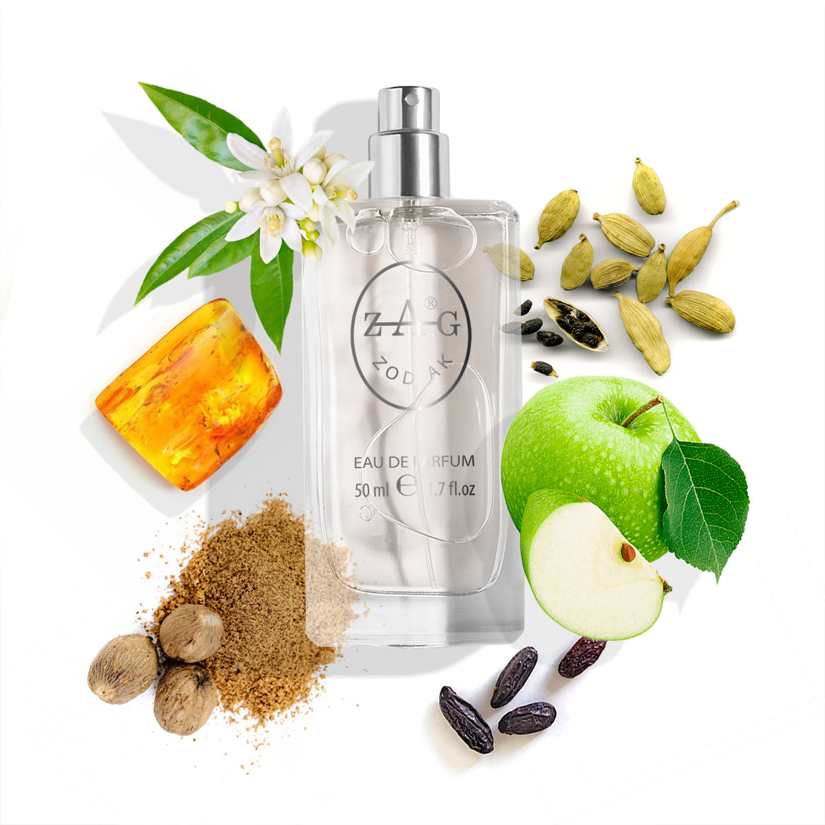 Topnoten van kardemom en groene appel, vloeiend naar rijke tonkaboon, amber en warme houtachtige akkoorden.
