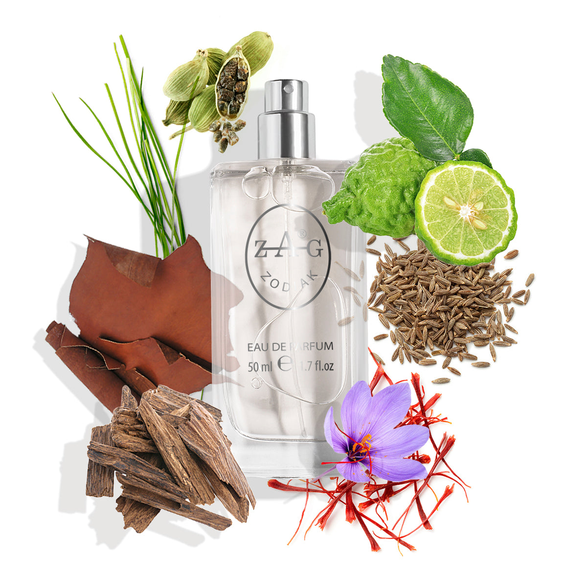 Warme leer en rokerige bossen vermengd met pittige saffraan en subtiele groene nuances, wat zorgt voor een diepe, exotische en betoverende geur.
